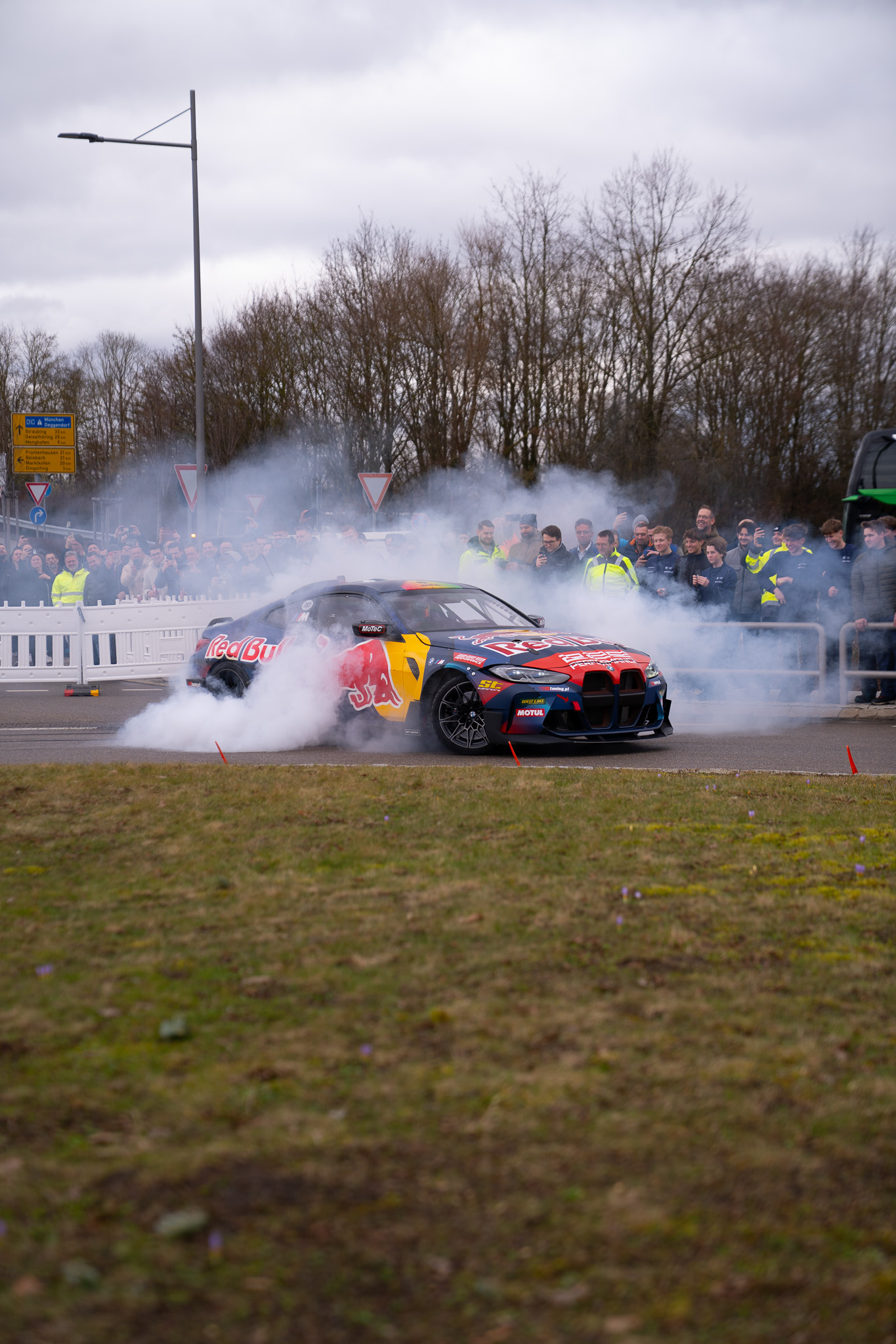 Quietschende Reifen, Qualm, brüllende und knallende Motoren – und strahlende Gesichter. Anlässlich der Betriebsversammlung hat sich das BMW DGF Werk ein besonderes Spektakel für ihre Mitarbeitenden überlegt: Die Red Bull Driftbrothers waren mit ihrem BMW M4 vor Ort und haben ein wahres Fest aufgefahren. Wir waren dabei und haben dieses besondere Ereignis festhalten dürfen. Mit 4 Kameras, 3 Actioncams, einer großen Drohne und einer FPV Drohne konnten wir an diesem Tag Videomaterial sammeln, das uns selbst beim Schnitt immer wieder einen kleinen Jubelschrei entlocken konnte.